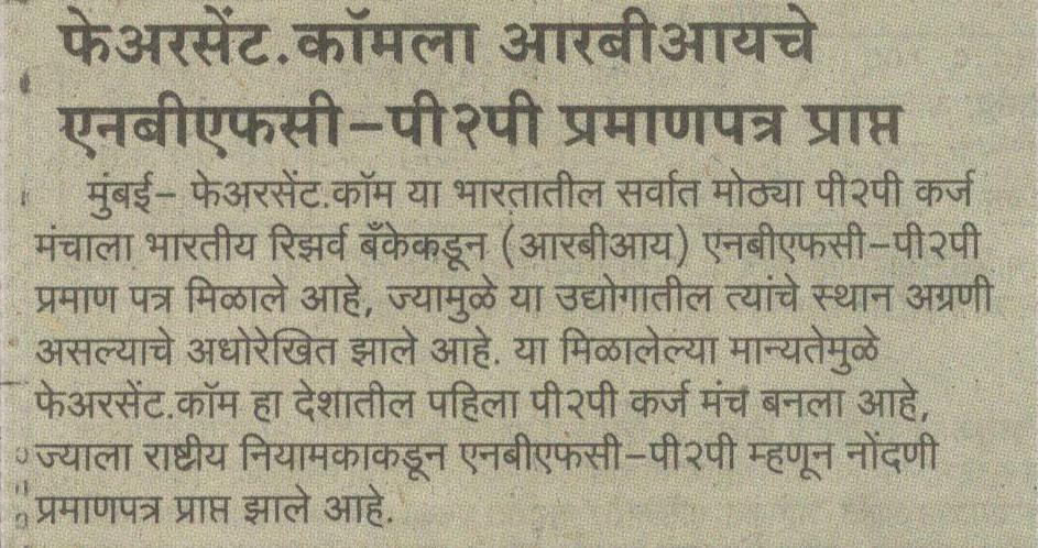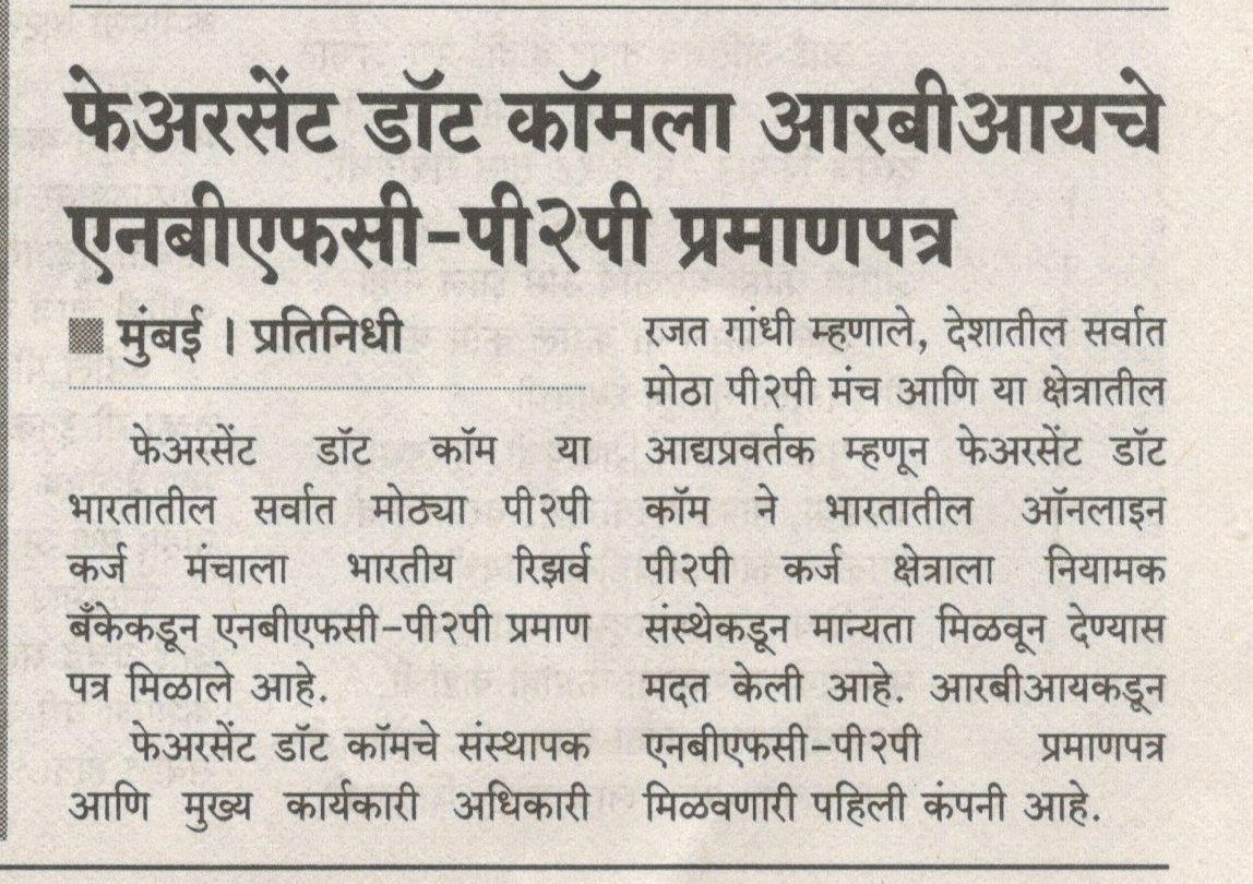 Faircent.com becomes NBFC-P2P; First P2P lending platform in the country to receive a NBFC-P2P certification from the Reserve Bank of India