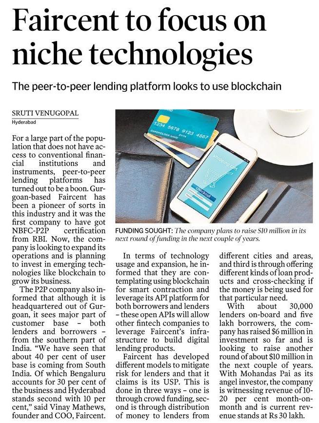 And Gurgoan-based Faircent has been a pioneer of sought in this industry and it was the first company to have got NBFC-P2P certification from RBI. Now, the company is looking to expand its operations and is planning to emerging technologies like blockchain to grow its business.