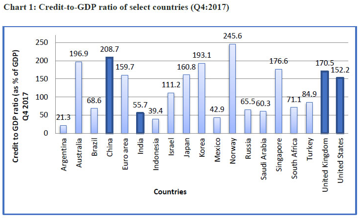 In fact, much of Indian credit has been targeted at large companies and big ticket loans, which have been hit by a string of defaults off late. RBI says that “it is no surprise, then, that India's credit-to-GDP ratio stands at a modest 55.7 per cent, compared to China's 208.7 per cent, United Kingdom's 170.5 per cent and United States’ 152.2 per cent (Bank for International Settlements, Q4 2017 data, see Chart 1).4 In other words, there is financial under-penetration in India.”