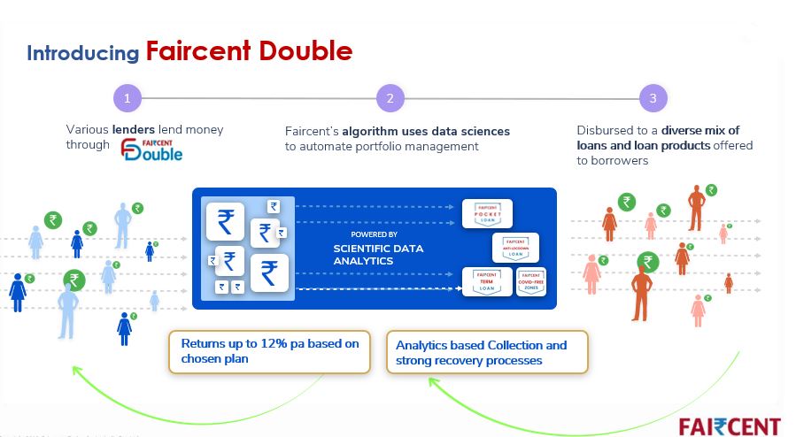 But what if, lots of investors were to pool their monies into a single portfolio to achieve efficiency in portfolio building and management. A portfolio that is built using AI and data analytics such that it can deliver higher and more stable returns. On that thought, Faircent launched Faircent Double.