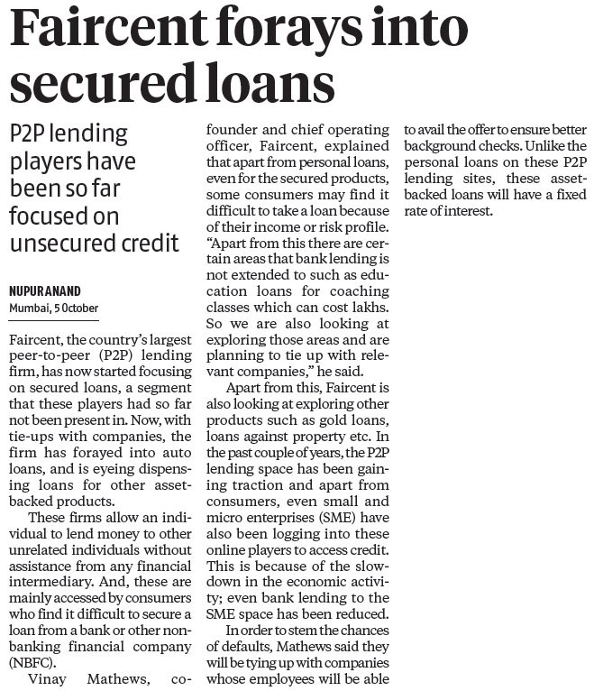 Read MoreFaircent introduces loans against collateral: Ties up with Baxi for easy access of loans to drivers